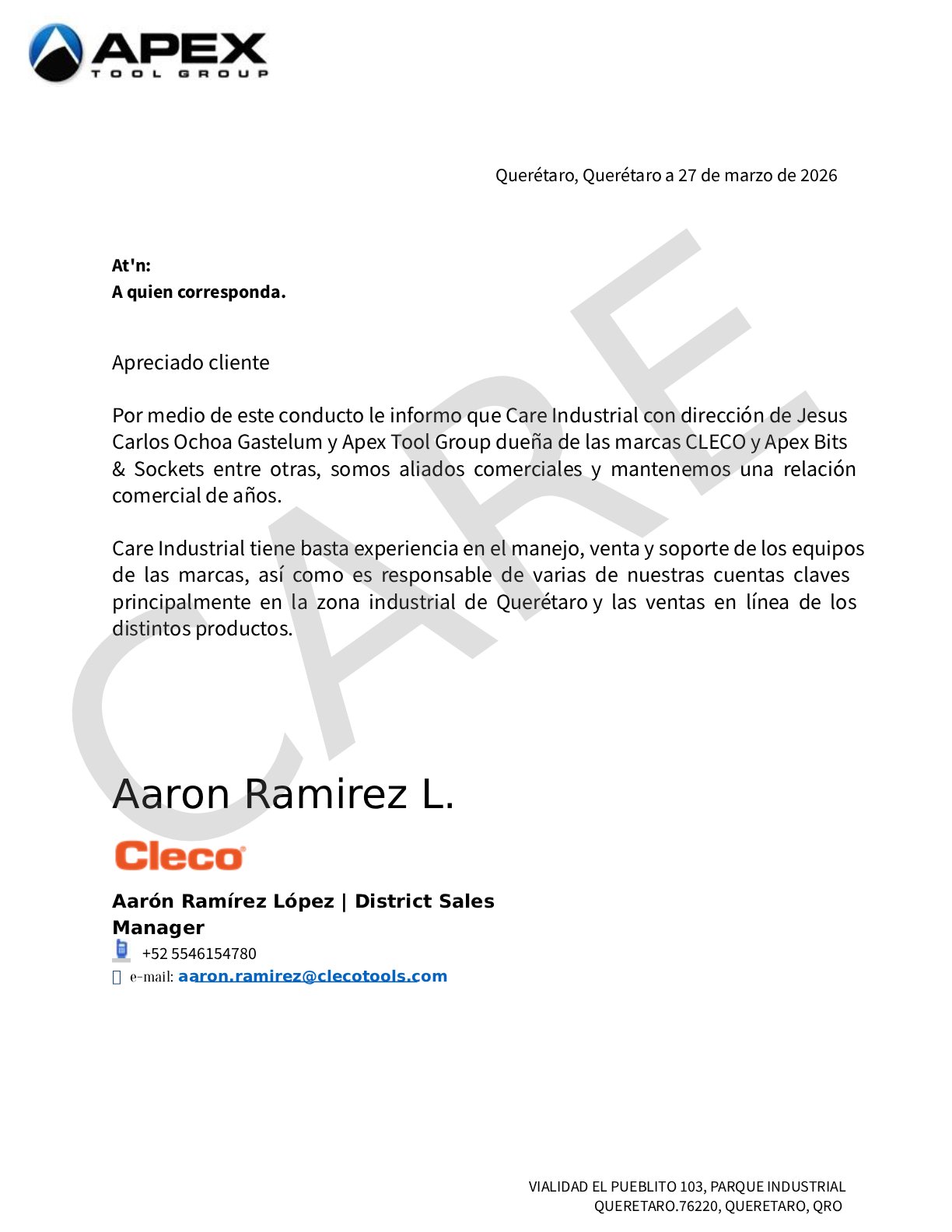 Representación directa de Cleco, Apex y Weller con acceso a catálogos técnicos y orientación por aplicación.